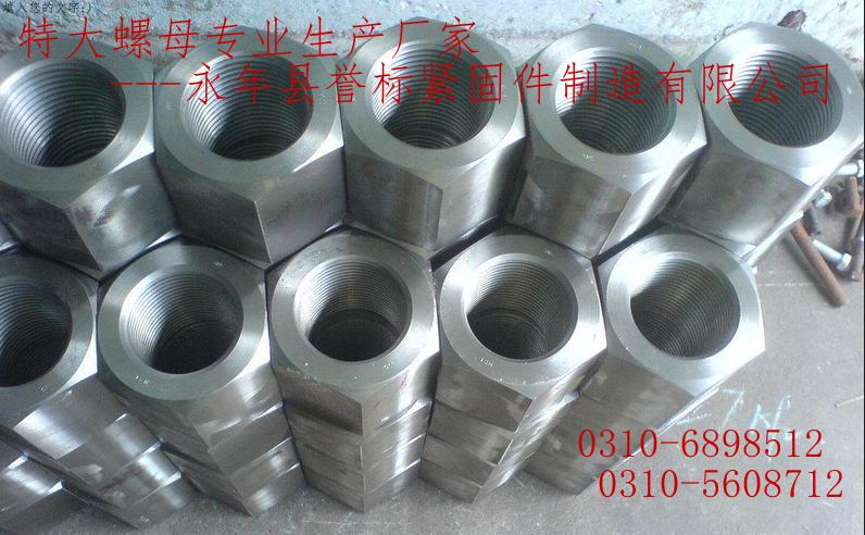 永年譽標緊固件公司,生產(chǎn):大螺母、特大螺母、超大螺母、異型螺母、特大圓螺母、特大方螺母等各種螺母,聯(lián)系電話:0310-6898512或15100051712